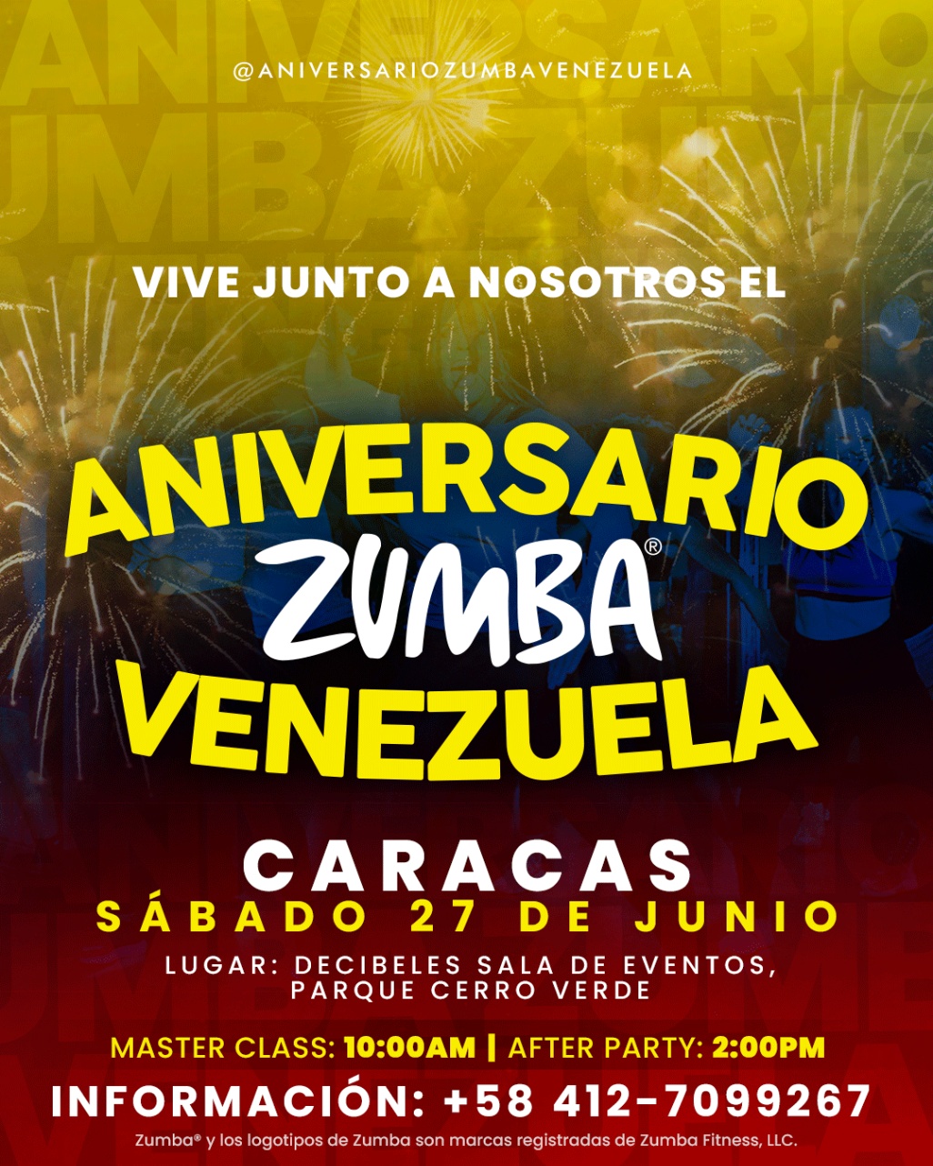 Aniversario ZUMBA® Venezuela es un evento creado con el objetivo de celebrar, fortalecer y proyectar la comunidad ZUMBA® en el país, ofreciendo una experiencia integral que combina actividad física, entretenimiento, formación y conexión entre marcas, instructores y participantes. Concebido bajo estándares profesionales de producción y experiencia de marca, el evento busca impulsar un estilo de vida activo y positivo, al tiempo que genera un espacio estratégico de visibilidad y relacionamiento para empresas que comparten valores de bienestar, energía, comunidad e innovación.