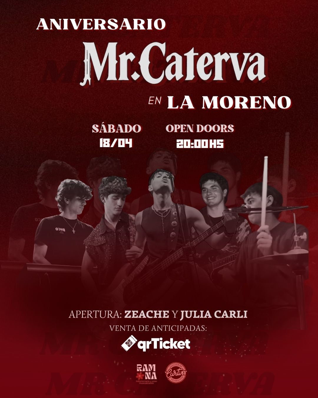 NOS VOLVEMOS A VER PARA FESTEJAR EL ANIVERSARIO DE LA BANDA. Nos reencontramos en la sala de "La Moreno" (Marcial Candioti 3341) para compartir una noche increíble junto a ustedes. Esta vez con la compañía de "Zeache" y "Julia Carli". Nos vemos el sábado 18 de ABRIL a las 20hs! (Las entradas de preventa incluyen púa personalizada de la banda)